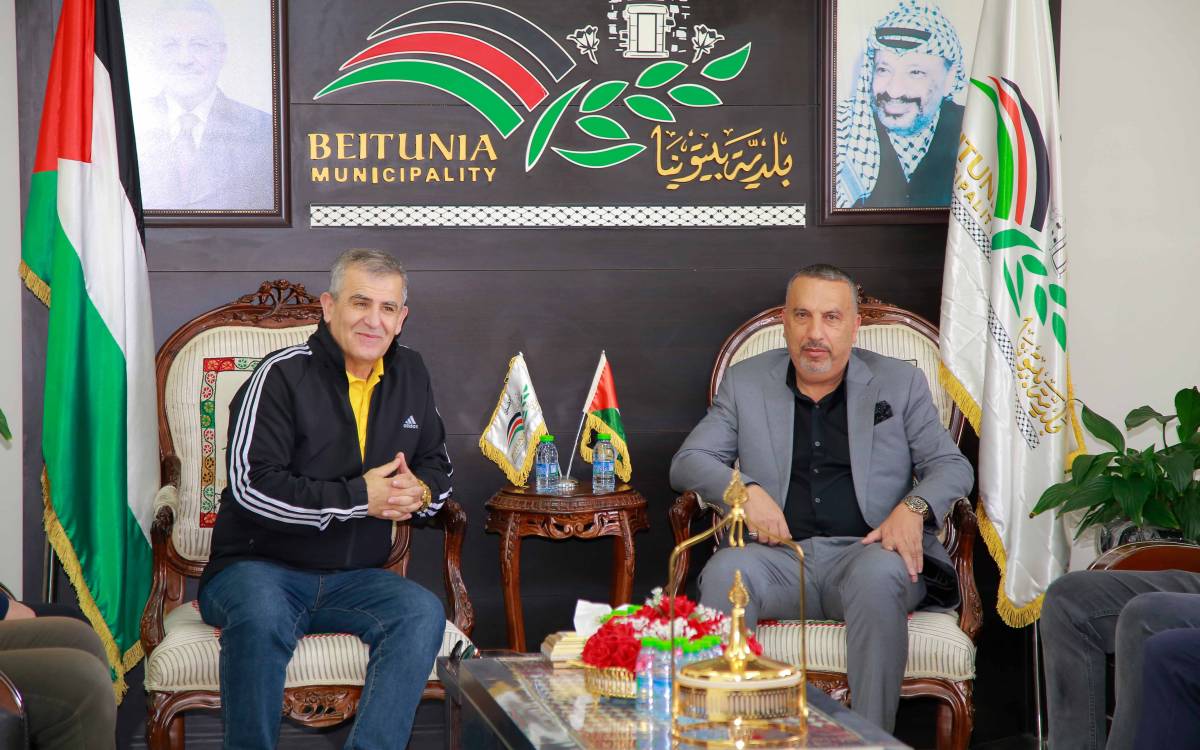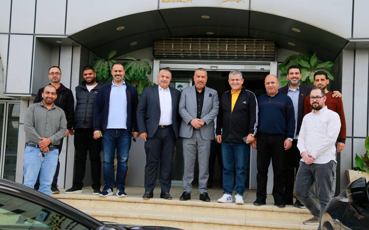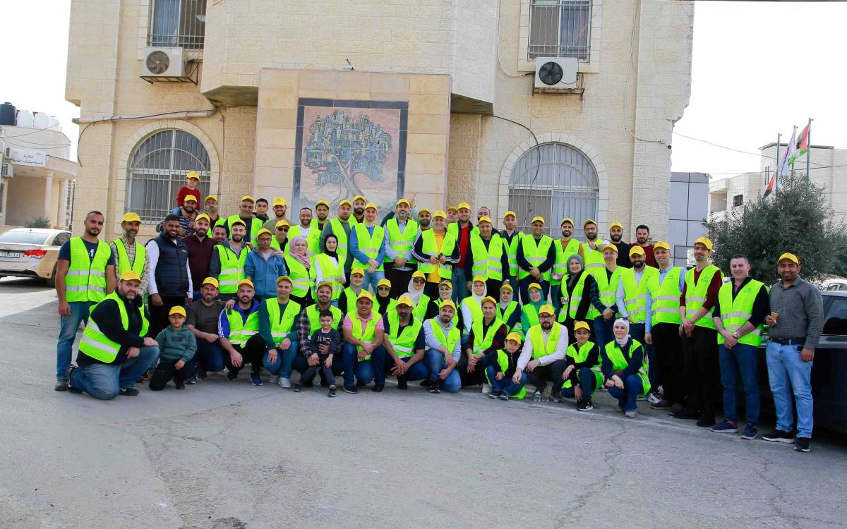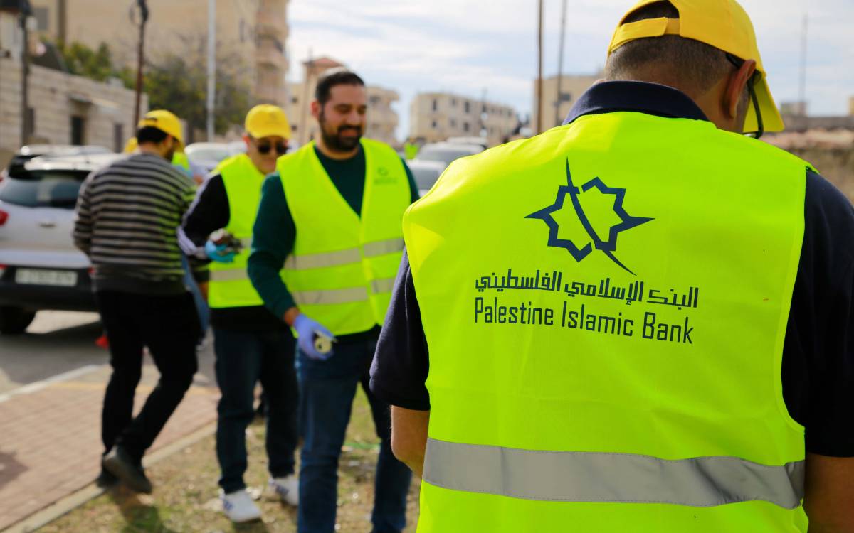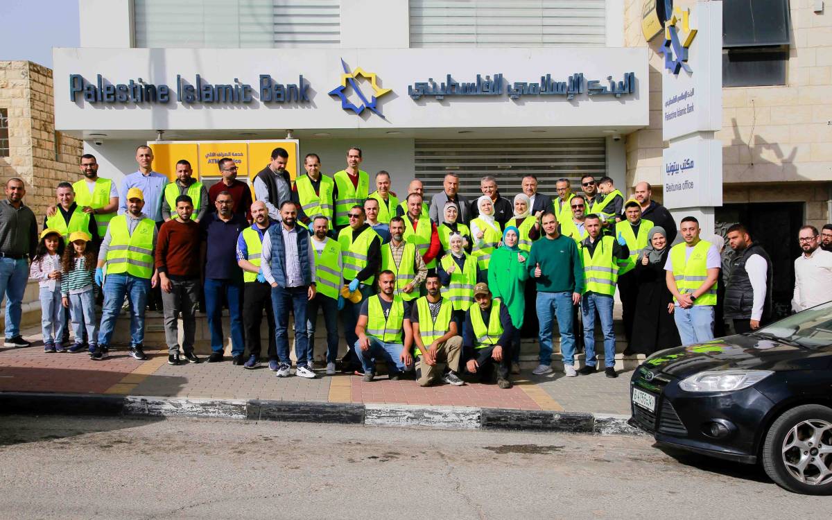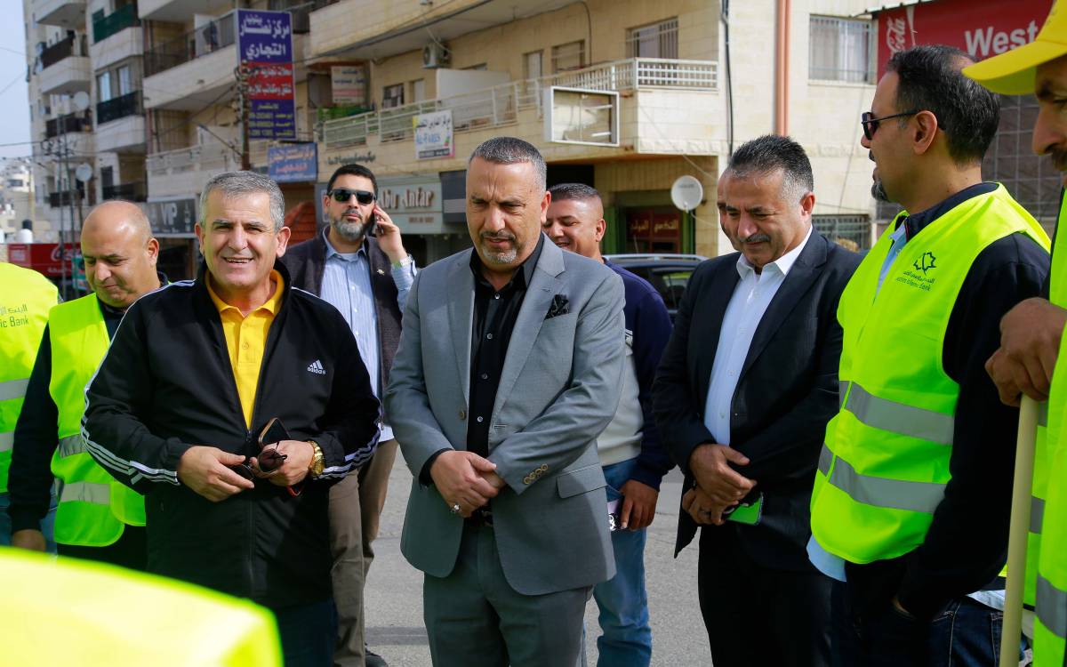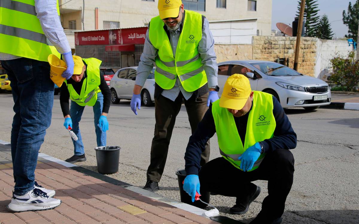 جانب من نشاط تطوعي أقامه موظفو البنك في مدينة بيتونيا لتنظيف الشوارع ودهان الأرصفة بالتعاون مع بلدية بيتونيا